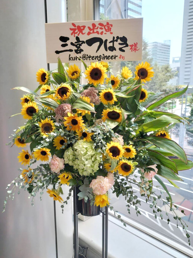 - Sweet Memoris出演をお祝いして、三宮つばきさんにファン有志一同でスタンド花を贈ることを企画